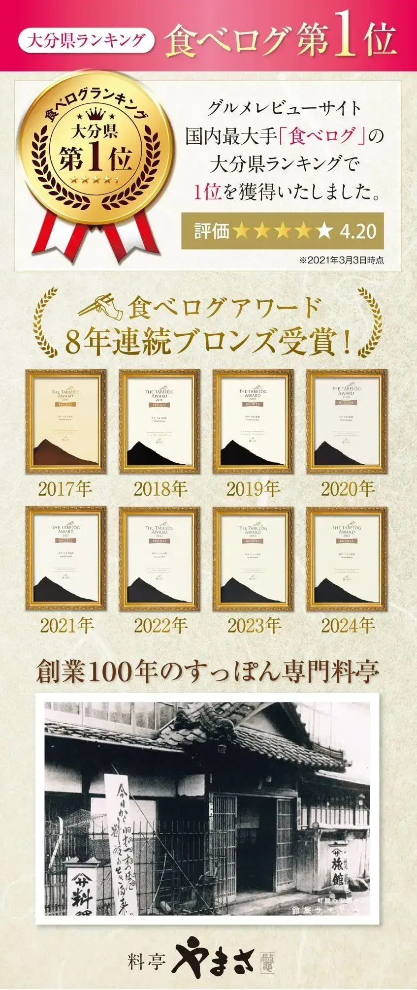 ※食べログ大分県1位:2020年1月28日時点 食べログ大分県ランキング